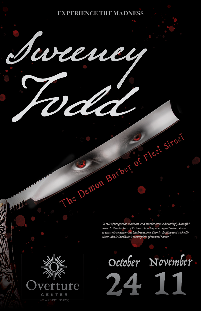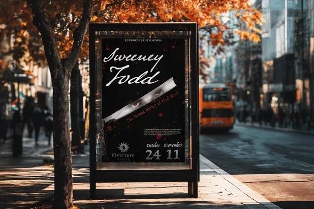 This poster was created for a production of Sweeney Todd: The Demon Barber of Fleet Street. My goal was to reflect the musical’s gothic and suspenseful atmosphere using striking color contrasts and dramatic composition. The design highlights both the sinister themes of the story and the theatrical energy of the performance.
